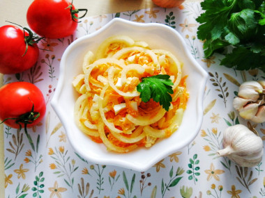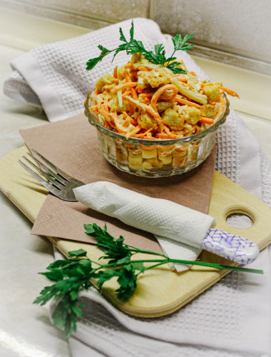 Корейская морковка у меня была домашняя, специи добавила в неё на свой вкус и уксуса немного.