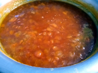 Раскладываем его по простерилизованным заранее баночкам небольшого объема. Сразу закатываем крышками и оставляем в теплом месте баночки остывать. После остывания убираем конфитюр на хранение в прохладное место.
