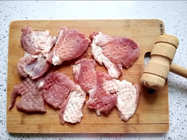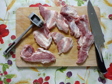Мясо порежьте поперек волокон на ломтики в 2 см толщиной.