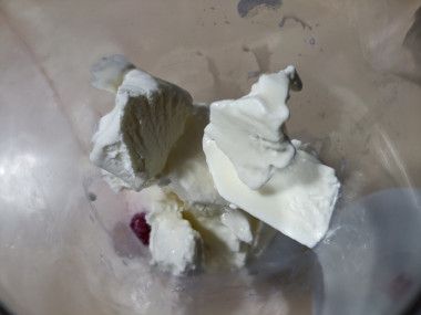 Положите в стакан мороженое и влейте молоко. Если ягоды у вас имеют кислый вкус, то можете добавить немного сахара.