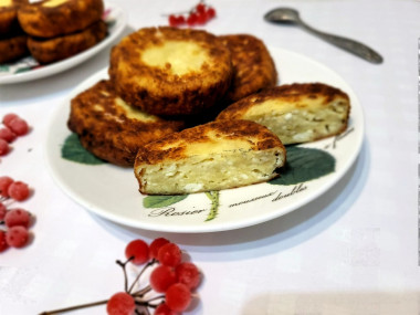 С помощью лопатки переверните сырники и обжарьте их также с другой стороны.