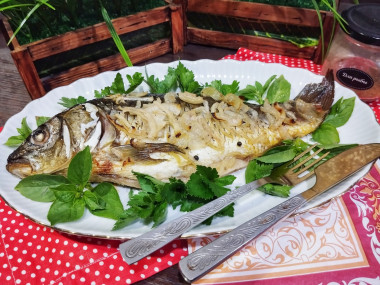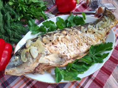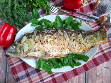 Подавайте запеченного карпа с луком к столу с любым гарниром. Приятного аппетита!