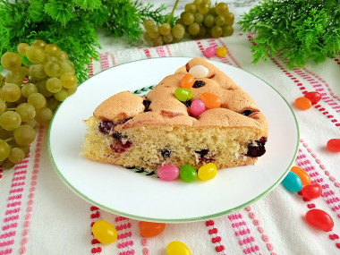У меня смородина частично ушла в тесто и получилось очень красиво! Шарлотка пышная и воздушная, а какой вкусный аромат! Пробуйте, не пожалеете!