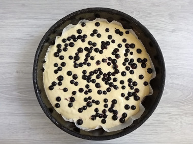 Форму для выпечки (Ø 18-20 см) застелите пергаментом и смажьте маслом. Выложите в форму тесто, поверх разложите смородину. Выпекайте пирог в предварительно разогретой до 180℃ духовке 35-40 минут до сухой шпажки. Точное время зависит от вашей духовки. Первые 25 минут духовку лучше не открывать. О том как правильно подобрать форму для выпечки, время и температуру выпекания читайте в статье. Ссылки находятся в конце рецепта.