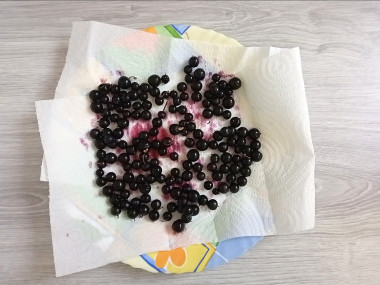 У меня была свежая смородина прямо с куста. Ягоды я выложила в сито и промыла, затем разложила на бумажном полотенце сушиться. А зимой буду печь с замороженной смородиной, тоже получается очень вкусно.