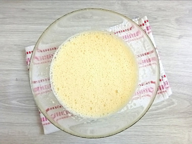 В миске соедините яйца, сахар и ванильный сахар. Взбейте миксером до пышности, посветления и увеличения массы. От того, как вы взобьете яйца, зависит воздушность вашего пирога. Нельзя взбивать массу прямо добела и до плотности - белок утратит воздушные пузырьки, которые поднимают тесто. И в таком случае не поможет даже разрыхлитель. Тесто либо не поднимется совсем, либо поднимется очень слабо.