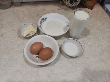 Как сделать красивые блины в духовке мягкие и толстые? Подготовьте продукты. Достаньте предварительно из холодильника яйца, масло и молоко, они должны стать комнатной температуры. Яйца возьмите небольшие, категории С1 будет достаточно. Молоко подойдет жирностью 2,5%. Сливочное масло, даже если его требуется немного, выбирайте самого лучшего качества, без растительных жиров.