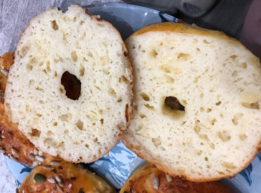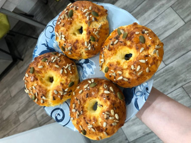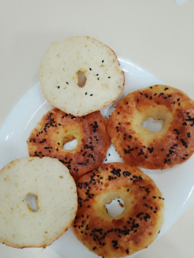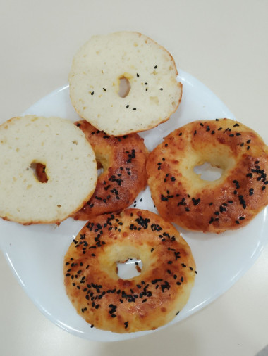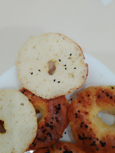 Готовые творожные бейглы необходимо остудить. Они отлично подойдут в качестве замены хлеба или булочек. Мне нравится подавать их, разрезав пополам, с курицей, зеленью, томатами или творожным сыром. Приятного аппетита!