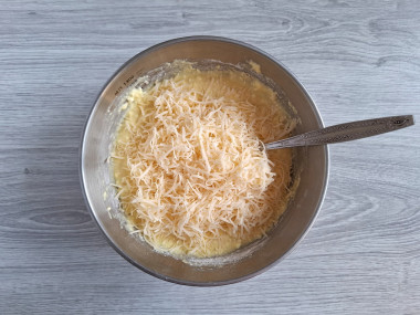 Всыпьте натертый сыр в тесто.