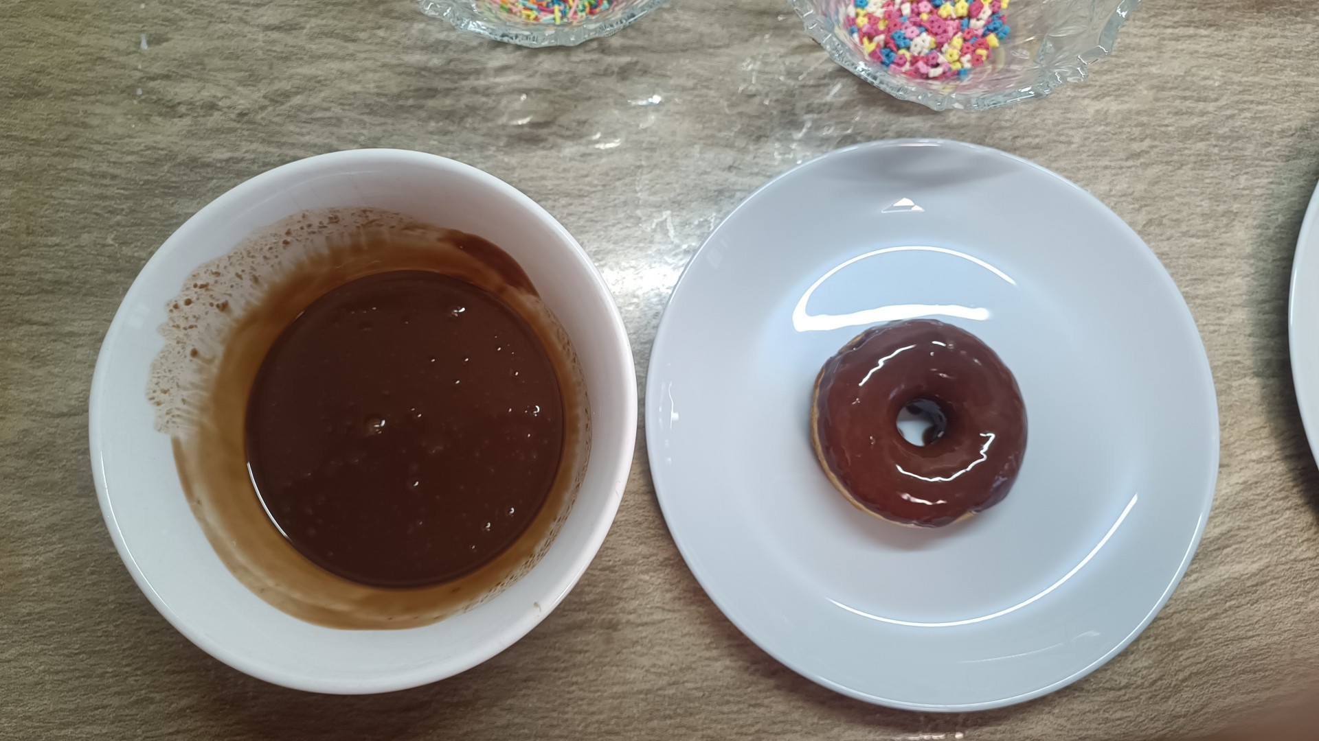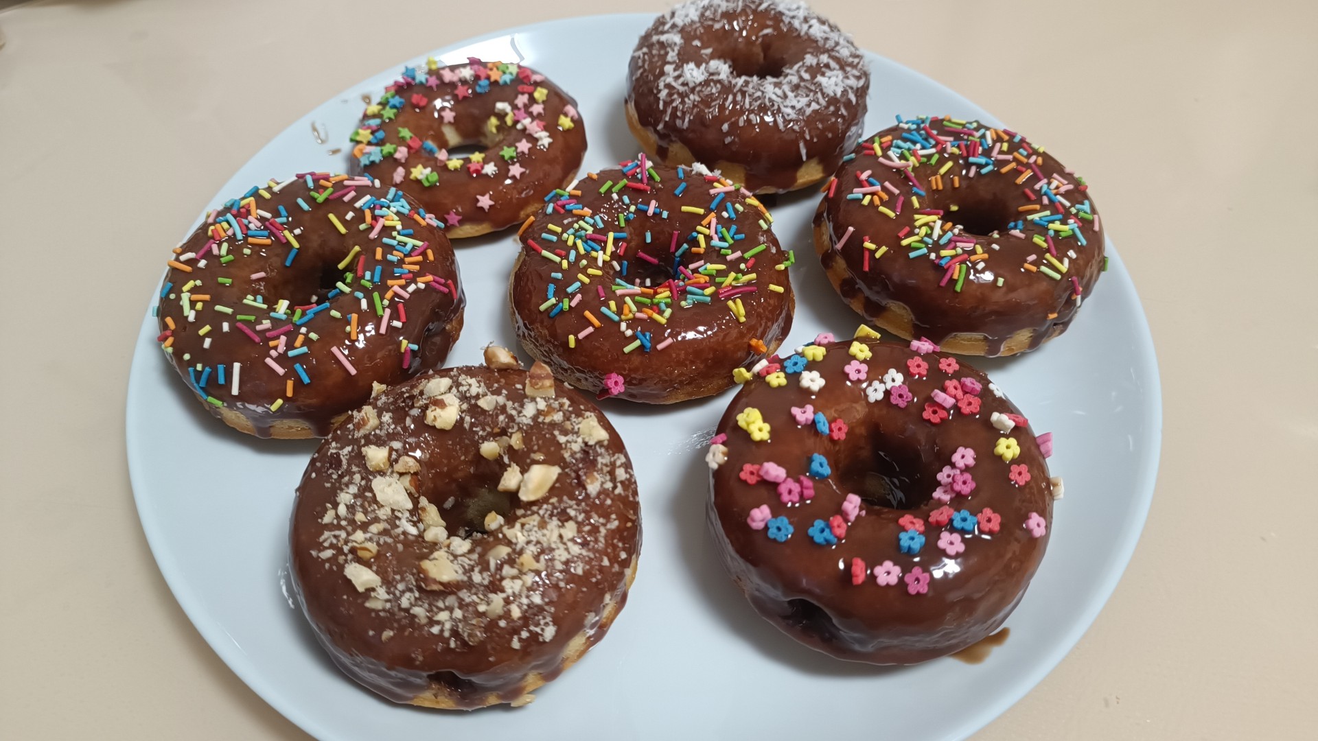 Украсьте пончики посыпкой и отправьте в холодильник на 10-15 минут.