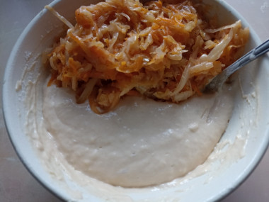 Добавьте в чашку остывшую капустную начинку.