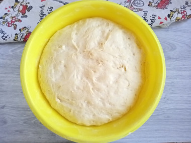 Теста замесила побольше, увеличив количество ингредиентов при помощи калькулятора сайта. За 1,5 часа на теплой кухне оно хорошо поднялось. В работе тесто мягкое, податливое, не липнет.