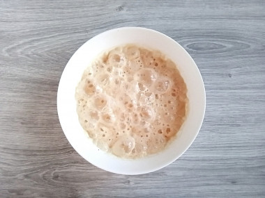 В мисочку насыпьте дрожжи и 1 ч.л. сахара. Залейте их теплой водой и перемешайте, чтобы дрожжи активировались. Этим мы проверим также их качество. Через 10-12 минут на поверхности должна образоваться пышная "шапочка". Если этого не произошло или дрожжи поднимаются очень медленно, то лучше заменить их другими.