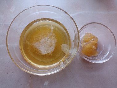 Перед началом взбивания хорошо охладите мед — подержите его сутки в холодильнике, тогда он взобьется быстрее и лучше. Возьмите химически нейтральную посуду — керамическую, стеклянную, эмалированную. Даже нержавейка нежелательна, так как металл может вступить в реакцию с кислотой меда. Тем более не берите алюминиевую — она окислится. Положите в выбранную миску оба вида меда.