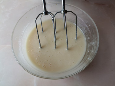 Начните взбивать мед обычным ручным миксером с обычными насадками венчик, сначала на самой минимальной скорости. Взбивайте около 1-2 минут. Мед постепенно начнет светлеть и превращаться из прозрачного в непрозрачный. Увеличьте скорость до максимальной. Взбивайте мед 10-15 минут. Он станет очень пышным, молочно-белого цвета. По консистенции больше похож на сгущенку.