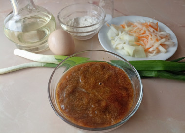 Отделить икру от пленок можно при помощи мясорубки, венчика или вилки. Но я предпочитаю, как и автор, протереть через сито. После этой манипуляции у меня получилось 900 г. икры. С помощью калькулятора сайта пересчитала количество остальных продуктов. Вместо квашеной капусты взяла маринованную. С квашеной тоже делала, в обоих случаях вкус капусты совсем не чувствуется. Зато котлеты получаются не жесткие, а очень сочные и мягкие. Из зелени добавила немного зеленого лука и сушеный укроп. "Тесто" у меня вышло жидковатым из-за того, что икра была замороженной, но больше муки добавлять не стала. Всех устроили оладушки).