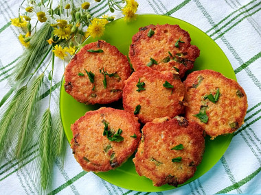 Добавьте панировочные сухари и опять все тщательно перемешайте. Посолите. Можно добавить любимые травы.
