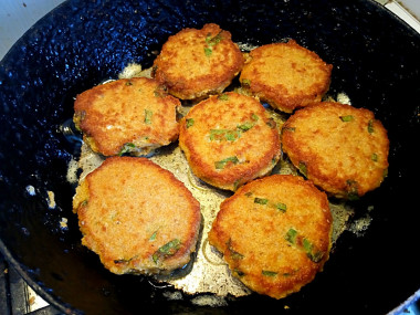 Согласно рецепту, икру хорошо промыла от крови и всяких примесей. Вилкой выбрала пленки, а затем хорошо взбила той же вилкой с яйцом. Кстати икры у меня оказалось 500 г., но с помощью специального калькулятора легко пересчитала нужные пропорции. Сухари брала с горкой, потом стало понятно, что "тесто" получилось густым. В принципе меня устроила такая консистенция, если надо пожиже, то нужно просто долить молока. От себя добавила зелёный лук, без него никак) Оладьи пожарились быстро. На сковороде сразу становились пышными. На вкус нам оладьи из икры понравились, у них интересный пористый вид внутри за счёт сухарей. Подавала со сметаной и кетчупом.