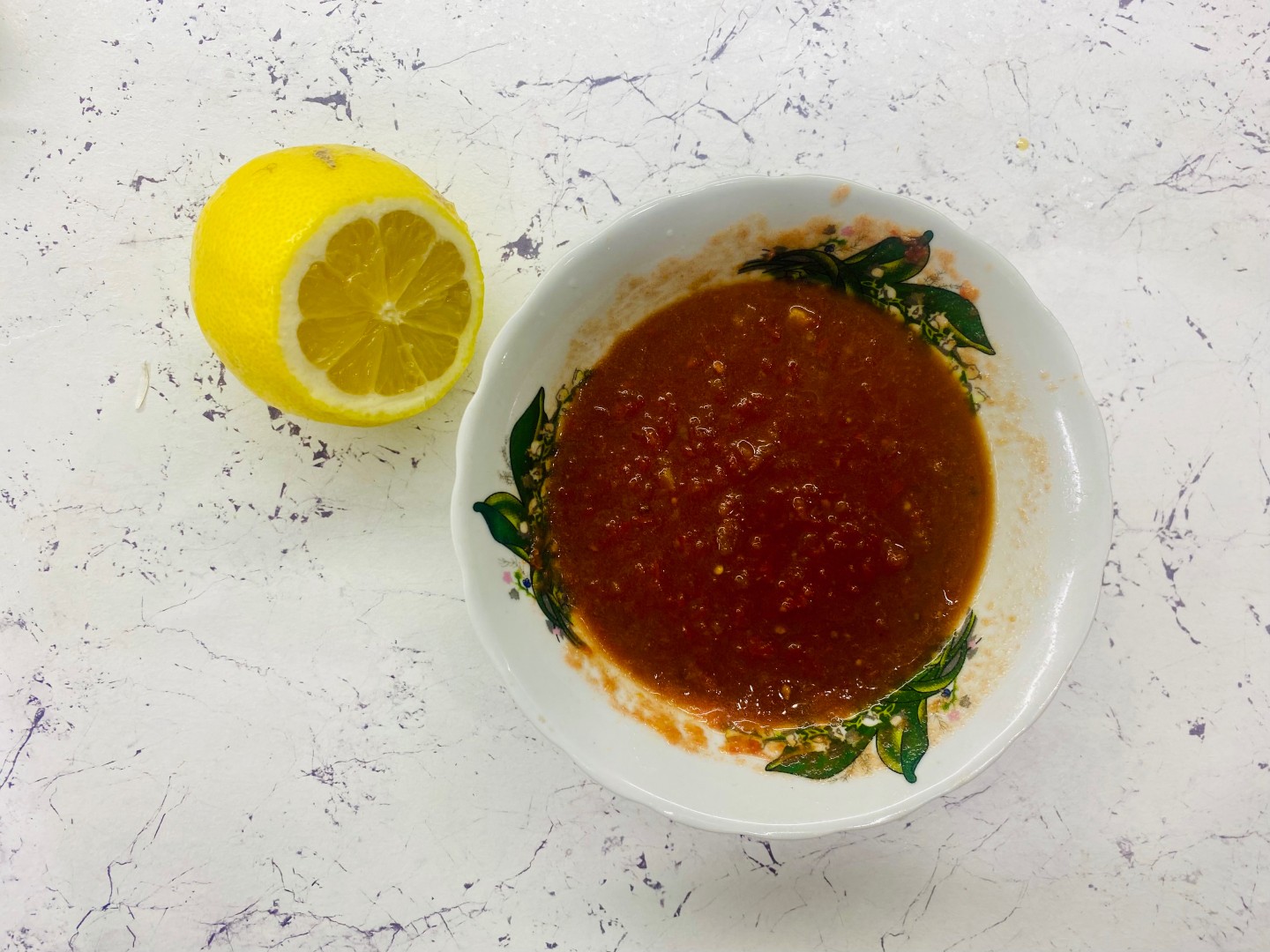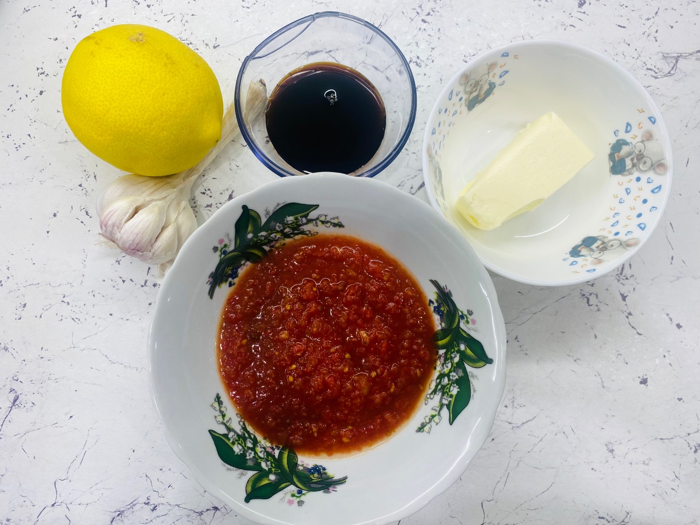 Я использовала домашнюю томатную пасту. Она не такая густая, поэтому воду не добавляла. Использовала соевый соус и лимонный сок, которые указаны в рецепте как альтернатива, что очень удобно.