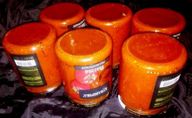 Из данного количества продуктов получается около 3 л соуса. Храните домашний кетчуп из кабачков с луком, паприкой и чесноком в темном и прохладном месте. Удачных Вам заготовок!