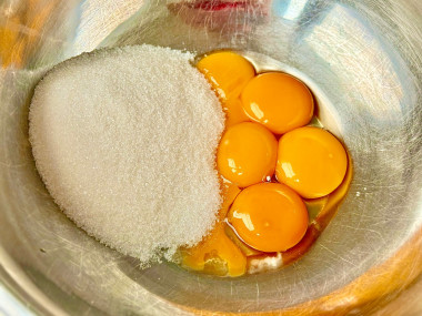 А желтки с сахаром до пышной светлой массы.