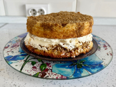 Разрежьте его на 2 коржа.