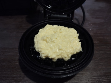 Закройте крышку вафельницы и пеките вафли примерно 4-5 минут до золотистого цвета. Время будет зависеть от возможностей вашей техники и желаемой степени зажарки вафель.