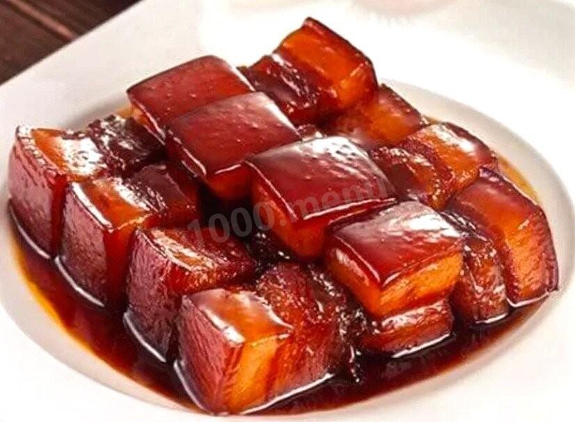 Теперь увеличите огонь под сковородой до максимума и влейте в сковороду со свининой вино и соевый соус. По необходимости доливаем в нашу свинину кипяток так, чтоб практически покрывало мясо.Добавьте сахар и специи и доведите все до кипения. Теперь снова уменьшите огонь, накройте свинину крышкой и тушите ее на самом слабом огне 25 минут.