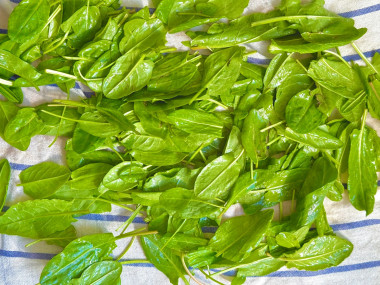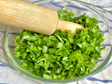 Щавель промойте, хорошо подсушите на бумажном полотенце и мелко порезать ножом.