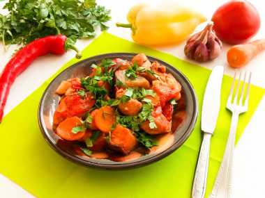 Переложите рагу на тарелку, украсьте зеленью и подайте к столу. Приятного аппетита!