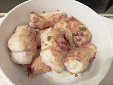 На каждый кусочек курицы выложите по 1 ст. л. начинки.