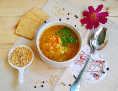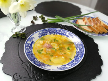 Очень захотелось домашнего , наваристого супчика с аппетитной морковно-луковой зажаркой , с ароматом зеленого лука и горчичным хлебушком.