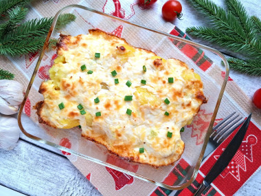 Это простое блюдо получилось удивительно вкусным и ароматным! Нежнейший сырный соус идеально дополняет рассыпчатую картошку! Обязательно попробуйте!