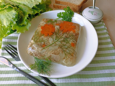 Приготовила холодец из свиных ножек с желатином. Ножку взяла одну- уж очень крупной она оказалась. Рульку, ножку, мясо предварительно вымочила в прохладной воде. Варился холодец при слабом кипении до полной готовности, пока мясо отлично протушилось и стало с лёгкостью отделяться от костей. Удалила мясо из бульона, в бульон добавила распущенный желатин. Измельчила мясную составляющую , добавила к ней мелко нарезанный чеснок, черный перец, перемешала всё вместе. На дно формочек выложила нарезанную отварную морковь, зелень, затем мясной слой , сверху аккуратно , через ситечко наливала горячий бульон. Когда разлитый холодец остыл- формочки поставила в холодильник для застывания. Я не всегда добавляю в холодец желатин, но его добавление гарантирует хорошее желирование, не нужно беспокоиться, что холодец плохо застынет. Спасибо автору за рецепт.