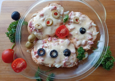 Такие бутерброды, как и начинку для любой пиццы, можно делать из любых продуктов, которые у Вас есть в холодильнике. Главные составляющие это - соус и сыр. К ним можно добавить грибы, оливки, корейскую морковь, маринованные огурчики, вареное мясо или птицу. Также можно использовать любые соусы как самодельные, так и покупные типа чесночного или тар-тар. Если дома нет кетчупа, его можно заменить томатной пастой.