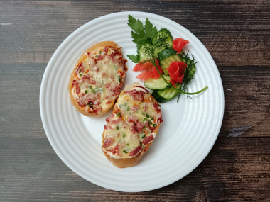 Мое любимое сочетание продуктов я описала в данном рецепте. Я и пиццу пеку именно с приведенной ниже начинкой, только вместо батона использую тесто.