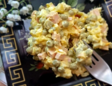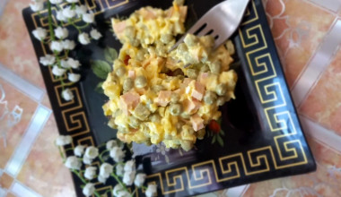 Колбасные изделия выбирайте качественные, ведь это напрямую влияет на вкус. Также вместо майонеза можно использовать сметану или, и сметану и майонез вместе. Тут уже на ваш вкус.