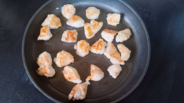 В сковороде на сильном огне разогрейте растительное масло. Выложите курицу и обжарьте, помешивая, до румяной корочки. Как правильно выбрать сковороду и масло для жарки можно узнать из отдельных статей. Ссылки есть в конце рецепта.