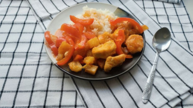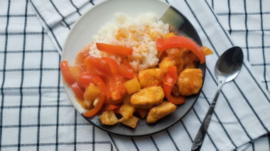 Рис с курицей в кисло сладком соусе - готовила впервые. Блюдо яркое, в азиатском стиле, добавила острый перчик для пикантности.