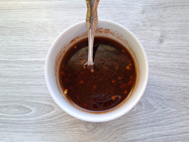 На ужин решила запечь куриные крылышки в кисло сладком соусе в духовке. Крылышки готовлю часто, мы с дочкой их любим, но этот маринад меня просто покорил! Только у меня не было красного винного уксуса, заменила его на 70 мл. белого винного уксуса и 30 мл. соевого соуса. Из приправ взяла копченую паприку и молотый душистый перец - очень ароматное сочетание. Чеснок всегда стараюсь брать свежий, он так аппетитно пахнет в духовке! Оливкового масла взяла 100 мл, на мой вкус этого достаточно. Но у всех вкусы разные, конечно.