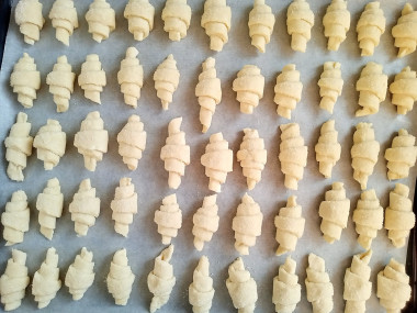 Очень люблю творожную выпечку. Поэтому, когда увидела рецепт рогаликов из творожного теста в духовке, решила испечь сразу двойную порцию.