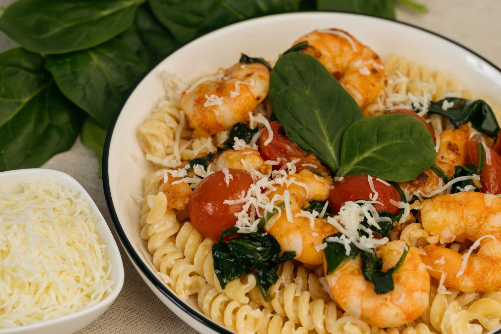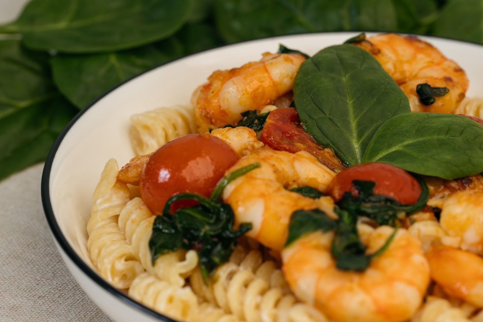В итоге паста получилась очень гармоничной. Креветки дали нежную, чуть сладковатую нотку, помидоры добавили сочность и приятную кислинку, шпинат внёс свежесть, а чеснок связал всё в единый, выразительный аромат. Сыра я добавила совсем немного — он лишь слегка смягчил вкус, и при желании от него вполне можно отказаться.