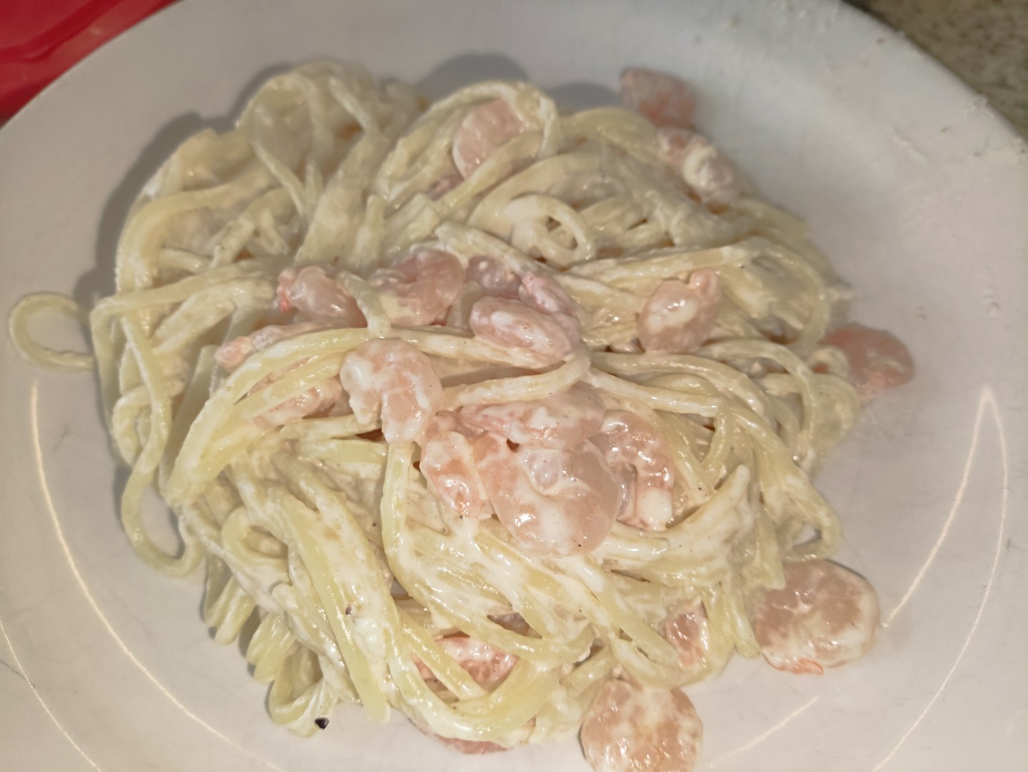 Это блюдо лучше всего подавать сразу. Хранить готовую пасту с соусом в холодильнике можно не более 24 часов в плотно закрытом контейнере. При разогреве сливочный соус может расслоиться, а креветки стать резиновыми. Разогревать лучше всего на медленном огне на сковороде, добавив ложку сливок или молока.