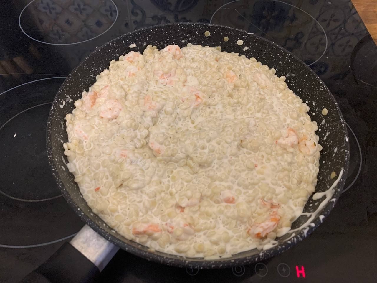 Сегодня на ужин решила готовила блюдо — птитим с креветками в сливочном соусе. Ранее всегда использовала макароны-спагетти.