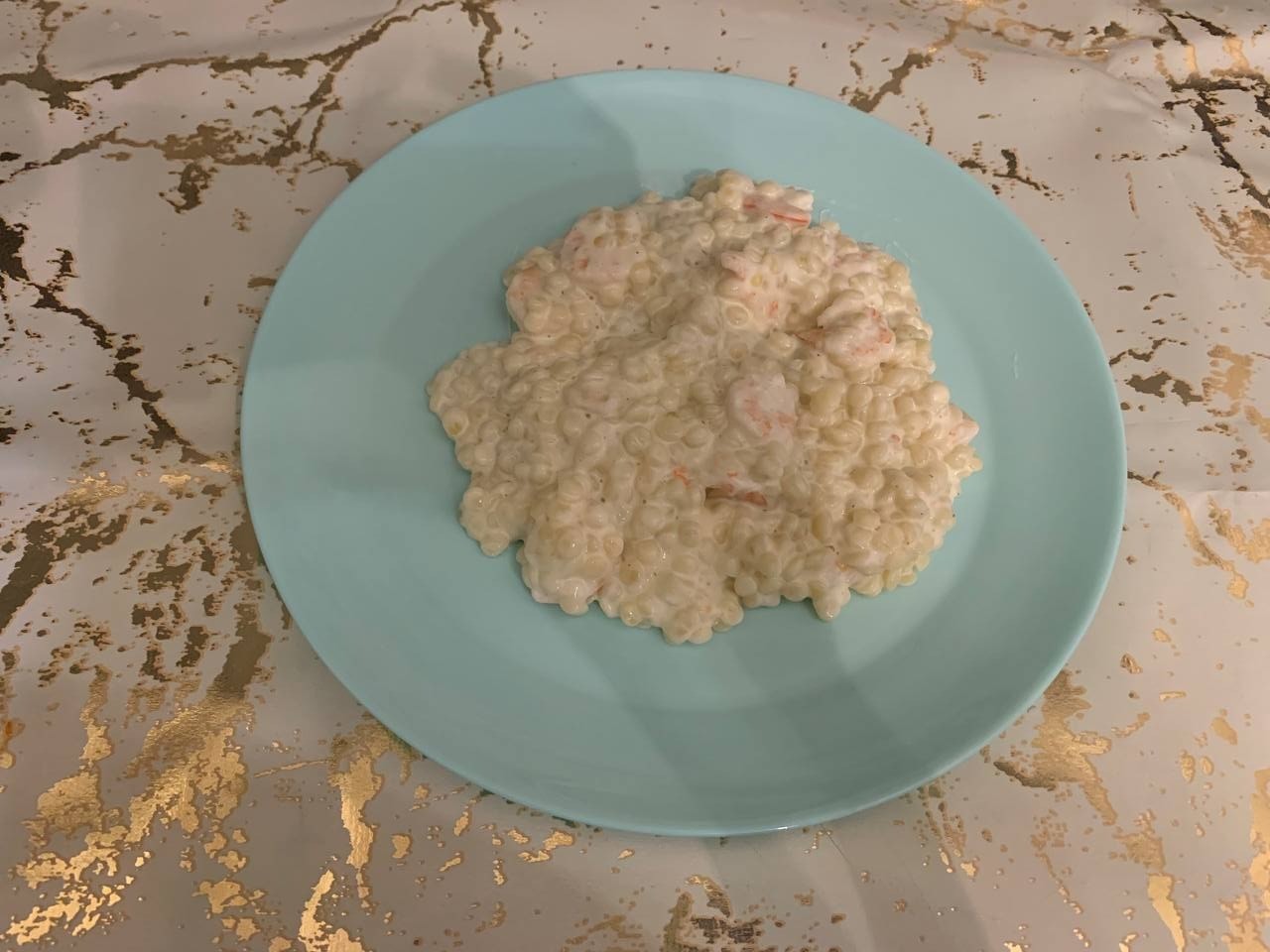 К ужину приготовила интересное блюдо по рецепту птитим с креветками в сливочном соусе.