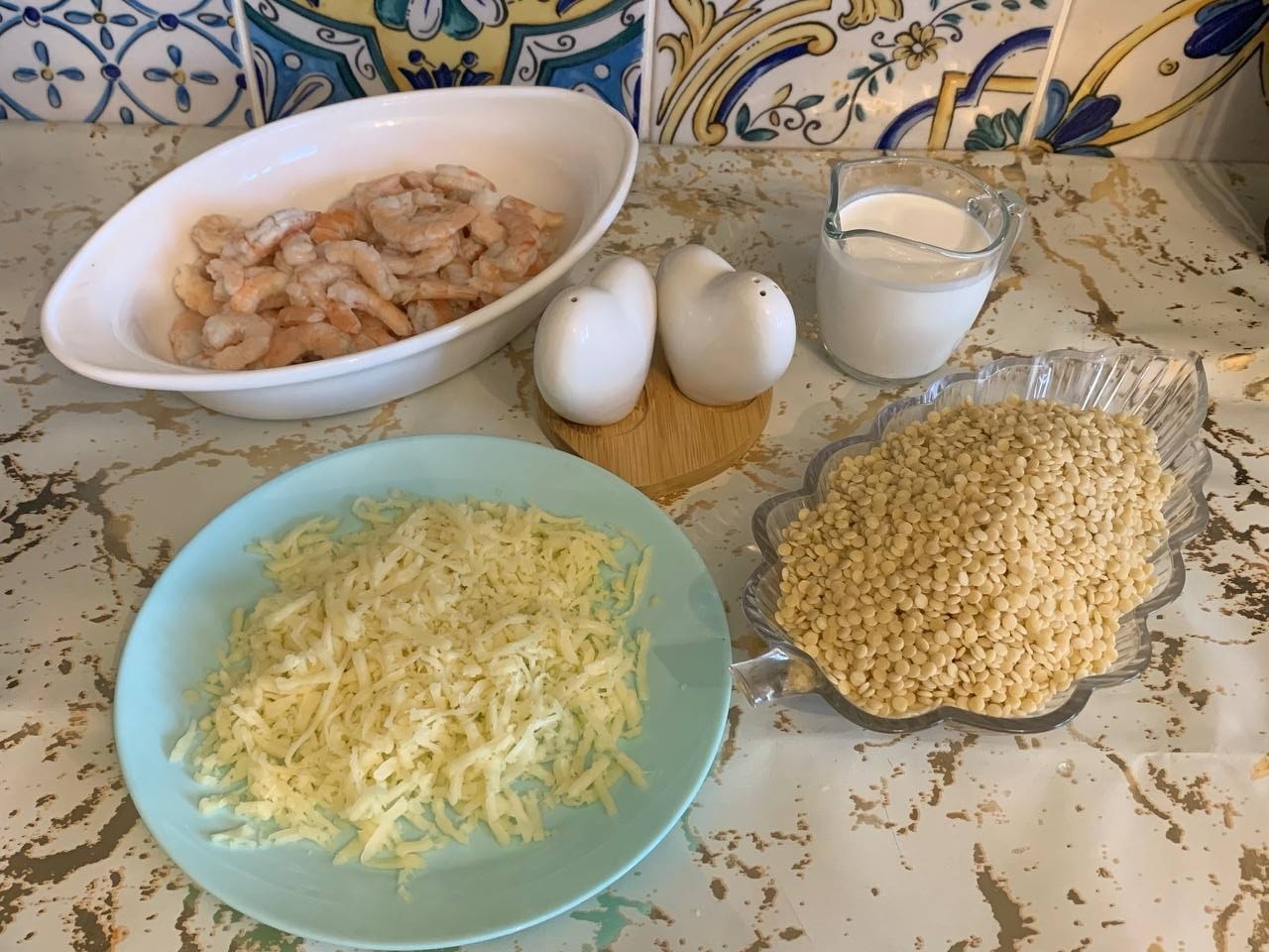 Как приготовить птитим с креветками в сливочном соусе? Подготовьте все продукты по списку. Креветки вы можете взять как сырые, так и варено-мороженные. О том, какие лучше выбрать креветки читайте в статье под рецептом. Креветки необходимо разморозить при комнатной температуре.