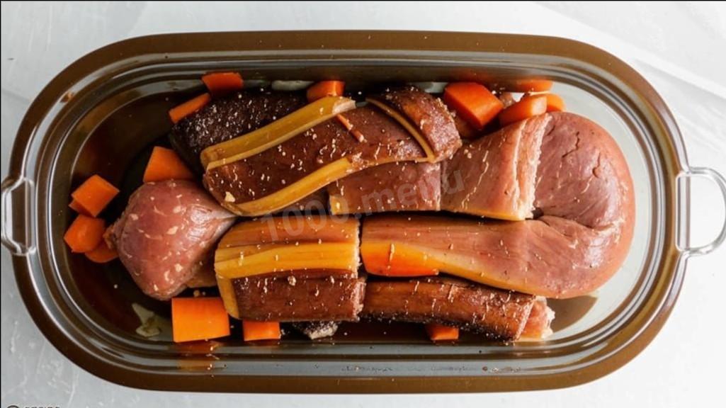 Завершение приготовления: После завершения программы оставьте мясо в чаше еще на 10-15 минут, затем остудите немного и нарежьте порционными кусочками.