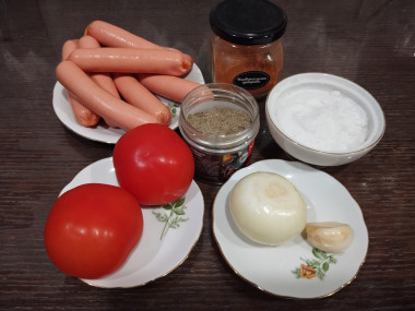 Как сделать жареные сосиски с овощами на сковороде? Подготовьте все необходимые ингредиенты для приготовления. Сосиски по возможности выбирайте с натуральным составом и по своему вкусу. Овощи вымойте и при необходимости почистите.