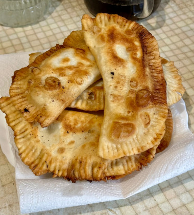 Пройдитесь вилкой по краям чебурека, слегка надавливая зубцами.