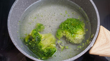 В сотейнике вскипятите воду. Отварите соцветия брокколи в течение 1 минуты.